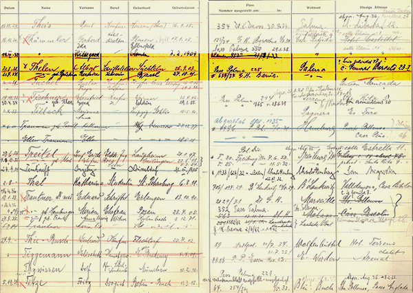 Am 31. August 1931 hat Albert Vigoleis Thelen auf dem deutschen Konsulat in Palma de Mallorca einen Reisepaß für sich selbst beantragt und am 21.7.1934 für seine Ehefrau Beatrice, geborene Bruckner. Dies belegt ein erst jetzt in einem Berliner Archiv aufgetauchtes Dokument: